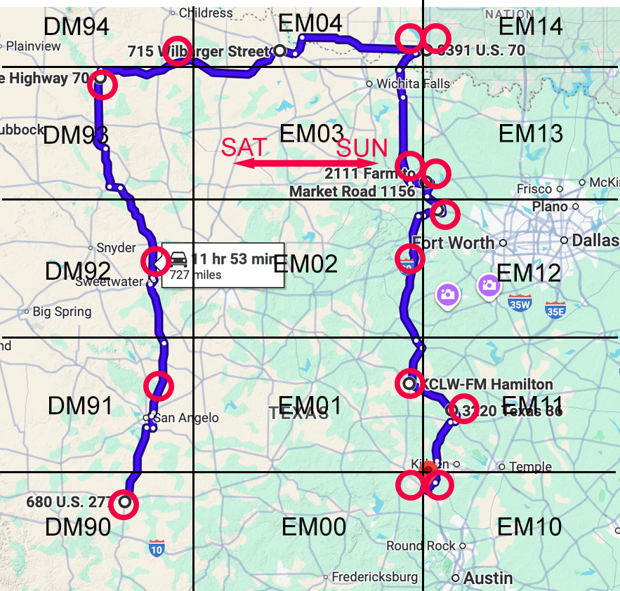 | 1830 | 1930 | Gatesville | EM11CM |